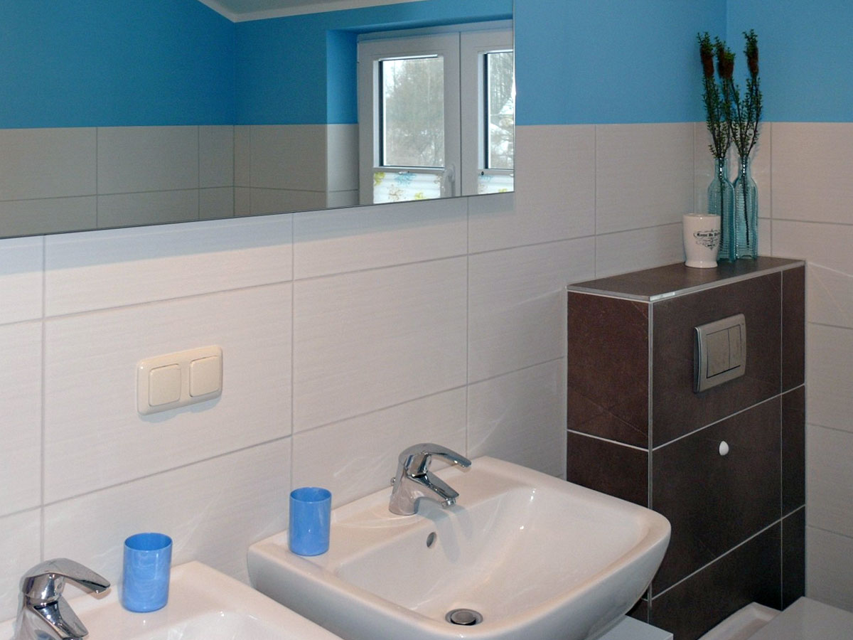 Das Haus verfügt über zwei Bäder, einmal mit Dusche und einmal mit Badewanne.
