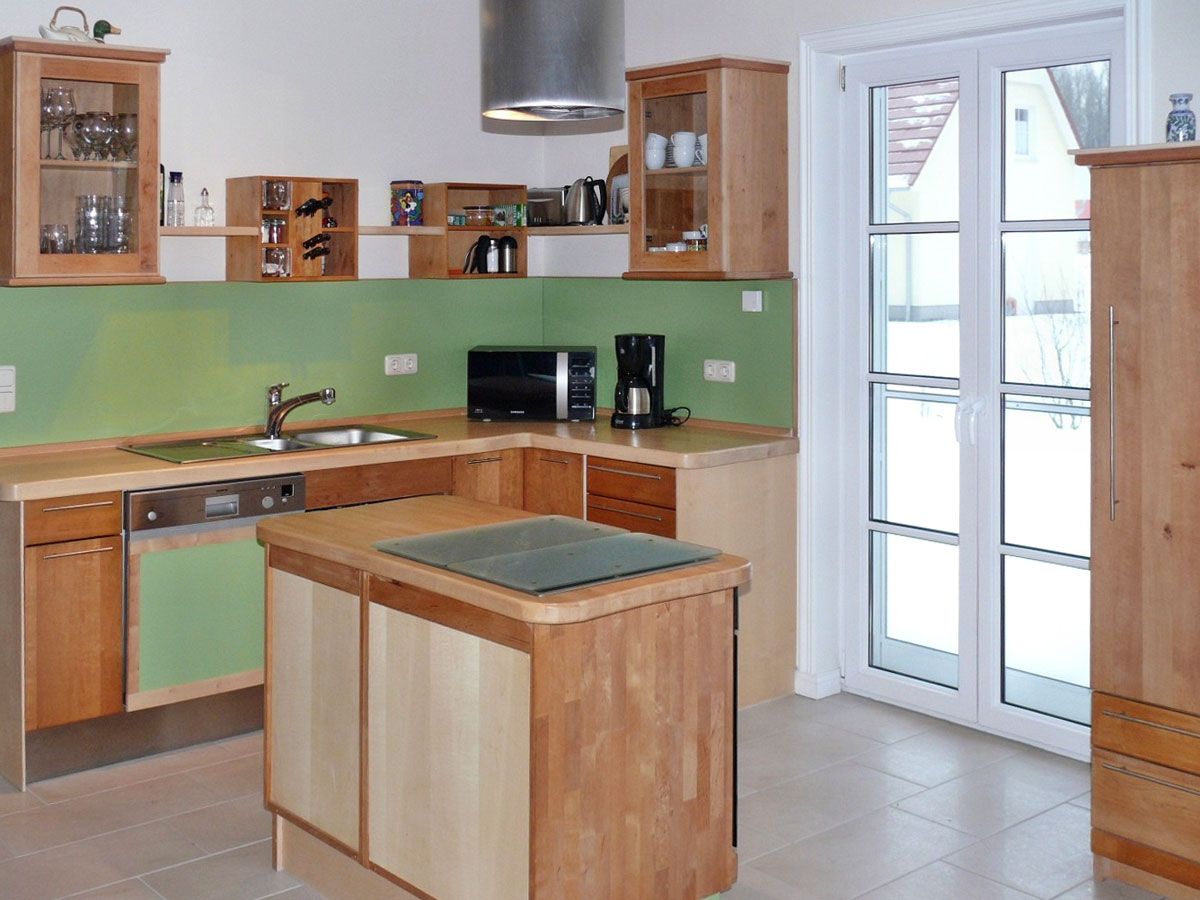 - Offene Küche mit Geschirrspüler, Elektroherd mit Ceran-Kochfeld und Backofen, Mikrowelle, Kühlschrank mit separatem Gefrierfach, Kaffeemaschine, Toaster und Wasserkocher